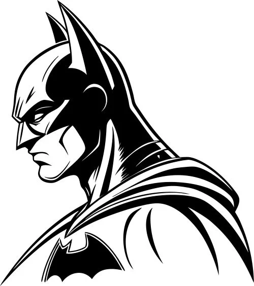 This striking Batman Dark Knight portrait showcases the iconic superhero in a dramatic side-profile silhouette. The design features Batman’s distinctive cowl with pointed ears, flowing cape, and the legendary bat symbol on his chest. Created with bold black and white contrast, this vector artwork captures the essence of Gotham’s protector through clean, precise lines perfect for CNC laser cutting. The intricate details include facial features, cape folds, and costume elements that create depth and visual impact. The design maintains excellent scalability while preserving all critical details for various project sizes.