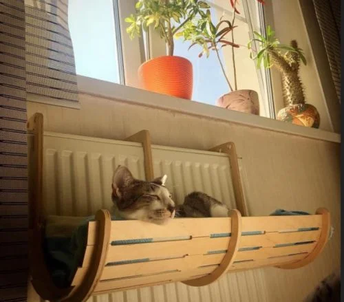 This cat hammock design stands out with its precision-engineered curved slat system that provides both comfort and structural integrity. The spacing between slats is optimized for cat claws and safety, while the mounting brackets include multiple attachment points for versatile installation options. The curved profile creates a natural nest-like environment that appeals to cats’ instinctive preferences. The design incorporates smooth edges and rounded corners for pet safety, with strategically placed support points that distribute weight effectively across the window frame.