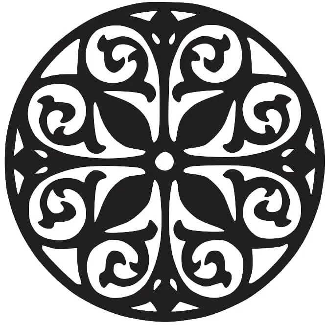 The standout feature of this mandala is the perfect fusion of Celtic scrollwork with botanical elements. Each of the eight sections maintains perfect rotational symmetry, while the intricate spiral details add depth and visual interest. The design balances negative and positive space expertly, ensuring clean cuts and structural integrity. The outer decorative elements and inner star formation create multiple focal points, while the flowing curved lines provide organic movement throughout the geometric framework.