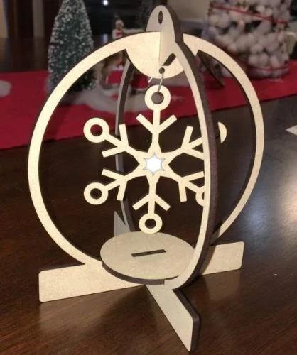 This Christmas Snowflake Ornament Stand design is optimized for CNC laser cutting and comes in ZIP vector format. Cut it on wood, MDF, or acrylic using LightBurn, AutoCAD, or CorelDRAW for precise results.