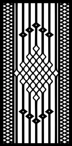The design stands out with its perfect symmetrical balance and hierarchical pattern arrangement. The central diamond lattice creates visual depth through overlapping curved elements, while the vertical stripe sections provide structural contrast. The decorative borders feature intricate zigzag patterns that add textural interest without overwhelming the main focal point. Each element is carefully sized to ensure optimal cutting results, with proper spacing between design elements to prevent material weakness during the cutting process.