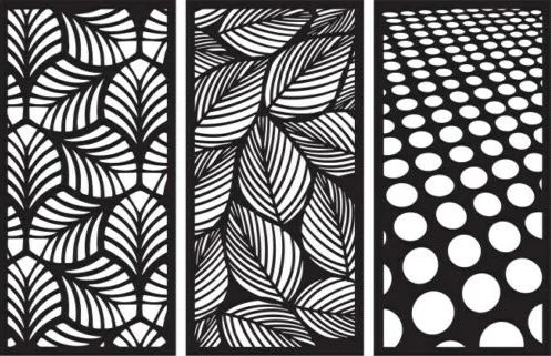 Each panel in this set offers unique visual appeal while maintaining consistent rectangular proportions for seamless integration into various projects. The intricate cutout patterns are optimized for clean laser cutting with minimal material waste and precise edge quality. The organic leaf patterns provide natural texture and movement, while the geometric dot pattern adds modern sophistication. All three panels feature balanced negative space that ensures structural integrity while maximizing visual impact through light and shadow interplay.