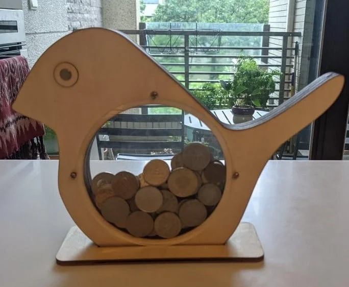 The design incorporates a perfectly sized circular opening that accommodates various coin sizes and small collectibles. The dinosaur’s graceful proportions create an eye-catching display piece that combines functionality with whimsical charm. The sturdy base ensures stable positioning, while the smooth edges provide safe handling. Assembly holes allow for easy construction and mounting flexibility, making this design both practical and decorative for any space.