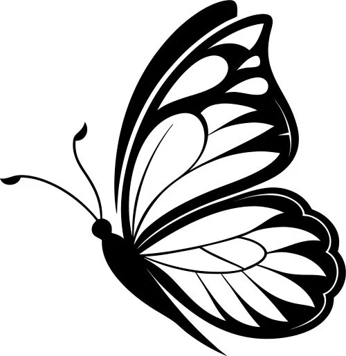 This stunning butterfly design showcases an elegant side profile view with incredibly detailed wing patterns and graceful curved antennae. The intricate artwork features flowing organic lines that create beautiful wing sections with varying sizes and shapes, from delicate upper wing segments to broader lower wing areas. The design captures the natural beauty and symmetry of a butterfly in flight, with smooth curves and artistic flourishes that highlight the creature’s delicate anatomy. The silhouette style emphasizes clean edges perfect for CNC cutting, while maintaining the organic flow and natural proportions that make butterflies such beloved subjects in decorative art.