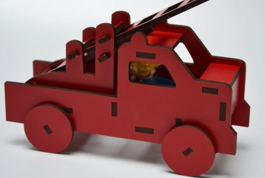 This versatile fire truck design serves multiple purposes from educational toys for teaching children about emergency services to decorative pieces for fire station waiting rooms or firefighter-themed bedrooms. It makes an excellent woodworking project for schools, scout groups, or maker spaces, teaching both laser cutting technology and assembly skills. Gift shops near fire departments, toy stores, and craft fairs will find this design appealing to customers. The puzzle aspect makes it perfect for STEM education, demonstrating engineering principles and problem-solving skills. It can also be scaled up for larger display pieces or playground equipment components.