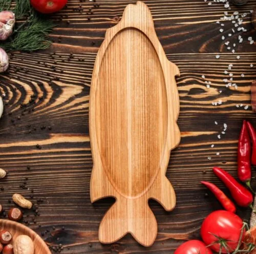 Perfect for creating unique kitchen gifts, wedding favors, or housewarming presents that stand out from conventional cutting boards. Restaurants and cafes can use these as distinctive serving trays for seafood dishes or appetizers, enhancing their brand identity. Home chefs will appreciate the generous cutting surface combined with the playful design that adds personality to food preparation. Craft fair vendors and Etsy sellers find strong demand for handmade wooden fish boards. The design also works beautifully as wall-mounted kitchen decor when not in use, combining functionality with artistic appeal in modern and coastal-themed kitchens.