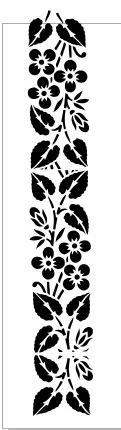 This elegant floral border design features a vertical decorative pattern showcasing an intricate vine motif with abundant foliage and botanical elements. The design displays a continuous flowing arrangement of stylized leaves, flowers, and organic shapes that create a harmonious border pattern. The black silhouette style presents bold, solid elements that are perfectly optimized for CNC laser cutting applications. The vertical orientation makes it ideal for creating decorative side panels, door inserts, or wall accents. Each botanical element is carefully positioned to maintain visual balance while ensuring structural integrity during the cutting process.