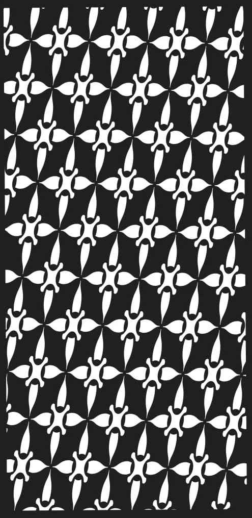 This ornamental cross pattern showcases exceptional attention to detail with its balanced composition and flowing organic curves. The repeating nature makes it perfect for creating large decorative panels or continuous borders. Each cross element features four symmetrical petal formations with graceful pointed extensions that interlock seamlessly with adjacent motifs. The design maintains consistent line weights throughout, ensuring clean cuts on CNC machines while preserving the delicate aesthetic of the ornamental details.