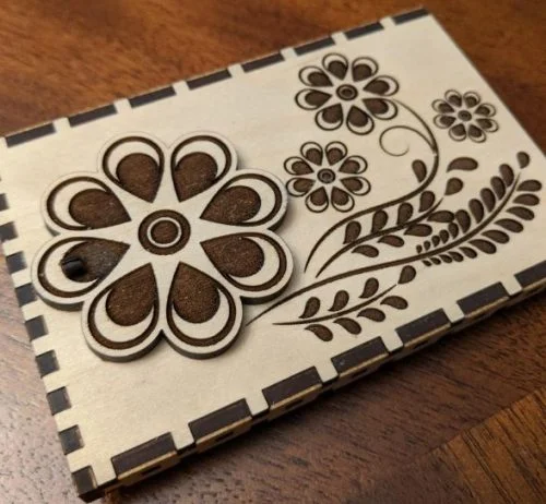 This Floral Decorative Box Top design is optimized for CNC laser cutting and comes in ZIP vector format. Cut it on wood, MDF, or acrylic using LightBurn, AutoCAD, or CorelDRAW for precise results.