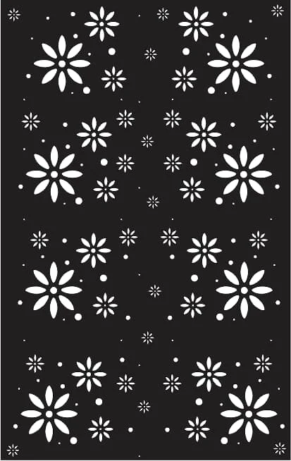 The design stands out with its perfect balance of positive and negative space, ensuring optimal cutting performance while maintaining aesthetic appeal. The varying flower sizes create visual depth and interest, while the strategic placement of dots and smaller elements fills the composition without overcrowding. The pattern repeats seamlessly, making it ideal for larger panels or continuous designs. Each flower features clean, geometric petals that will cut precisely with laser equipment, and the overall design maintains sufficient material bridges to ensure structural stability during and after the cutting process.