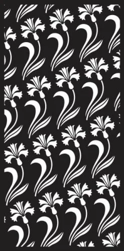 The design incorporates perfectly balanced positive and negative space relationships that ensure structural integrity during cutting while maintaining elegant aesthetic appeal. Each curved element flows seamlessly into the next, creating continuous pathways that guide the eye naturally across the panel. The botanical motifs feature varying scales and orientations, preventing monotonous repetition while maintaining pattern cohesion. Strategic connection points between design elements ensure the panel remains structurally sound after cutting, with no floating pieces that could fall out during the fabrication process.