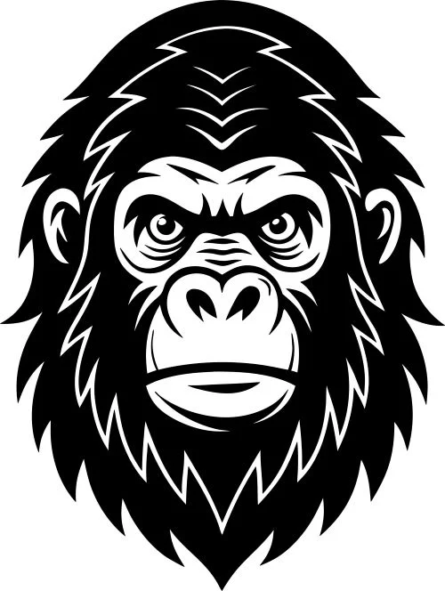 The design emphasizes high contrast silhouette styling that maximizes cutting efficiency while maintaining artistic integrity. Notable features include intricate fur texture details, realistic facial proportions, and carefully balanced positive and negative space relationships. The gorilla’s expressive eyes serve as focal points, surrounded by detailed facial hair patterns that demonstrate the sophisticated level of vector artwork. This professional-grade design eliminates unnecessary complexity while preserving the essential characteristics that make the gorilla instantly recognizable and visually impactful.