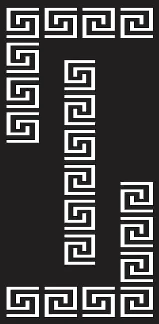 This elegant Greek Key border frame features the classic meander pattern arranged in a perfect rectangular border configuration. The design showcases continuous interlocking geometric lines forming the traditional Greek fret motif, with crisp right-angled spirals creating a sophisticated repeating pattern. The frame consists of individual Greek Key elements positioned along all four sides, creating corner connections that maintain the pattern’s continuity. Each meander element displays clean geometric lines with consistent spacing and proportions, making this design ideal for precision laser cutting and CNC routing applications.