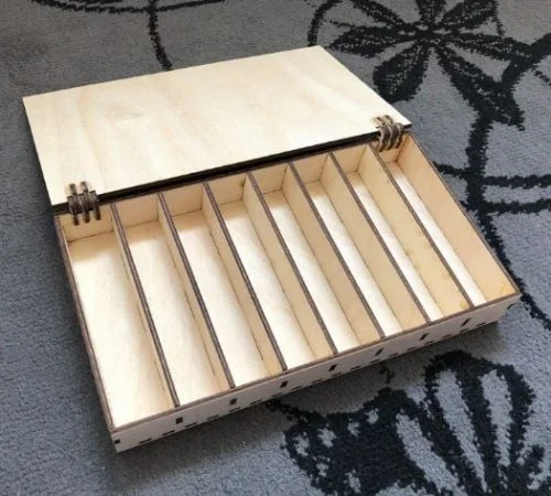 This Laser Cut Box Template Free Vector E1728422538623 — Free CNC File design is optimized for CNC laser cutting and comes in ZIP vector format. Cut it on wood, MDF, or acrylic using LightBurn, AutoCAD, or CorelDRAW for precise results.