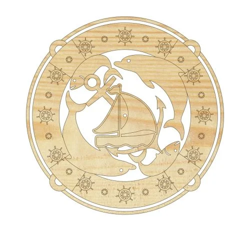 This nautical design cuts beautifully on various materials including birch plywood, MDF, and marine-grade wood for authentic appeal. Recommended thickness ranges from 3-6mm for detailed elements. Acrylic versions create stunning translucent effects perfect for backlit displays. The design also works excellently on leather for unique nautical accessories. When cutting wood, use lower speeds for intricate dolphin details, and ensure proper ventilation when working with marine-treated materials for outdoor applications.