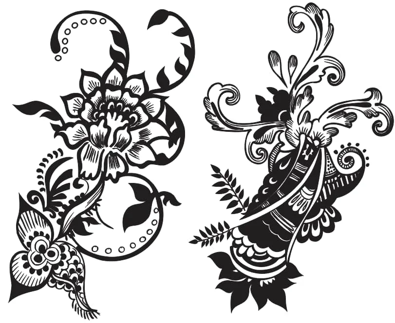 These ornate paisley elements are perfect for creating sophisticated wall art, decorative room dividers, and elegant window treatments. Use them for wedding decorations, event backdrops, or as accent pieces in bohemian and traditional interior designs. They make excellent templates for stenciling, embossing, or fabric printing projects. Craft applications include scrapbooking embellishments, jewelry components, and decorative boxes. Business applications include retail displays, restaurant decor, spa treatments rooms, and boutique signage. The timeless paisley motif appeals to diverse cultural aesthetics and design preferences.