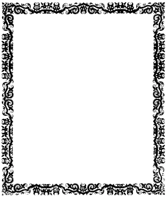 This exquisite Victorian border frame features an elaborate ornate design with intricate scrollwork, floral motifs, and decorative flourishes that exemplify classic 19th-century artistic elegance. The rectangular frame showcases symmetrical patterns with detailed curvilinear elements, featuring ornamental corners with elaborate spiral scrolls and delicate botanical details. The border consists of repeating decorative elements including stylized flowers, leaves, and geometric patterns that create a sophisticated vintage aesthetic. The design maintains perfect symmetry with mirrored elements on all four sides, creating a harmonious and balanced composition ideal for framing artwork, photographs, or creating standalone decorative pieces.