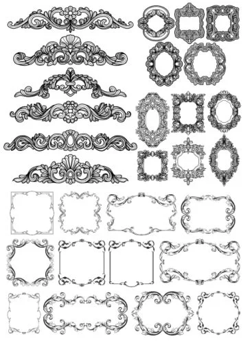 The standout features of this design collection include the incredible attention to detail in each ornamental element, with fine line work that translates beautifully to laser cutting applications. The frames feature varying levels of ornate complexity, from simple decorative borders suitable for beginners to highly detailed baroque patterns for advanced projects. Each design maintains perfect symmetry and balance, with carefully proportioned scrollwork and flourishes that create stunning visual impact. The collection offers versatility with both standalone frames and modular border elements that can be combined and customized for unique applications.