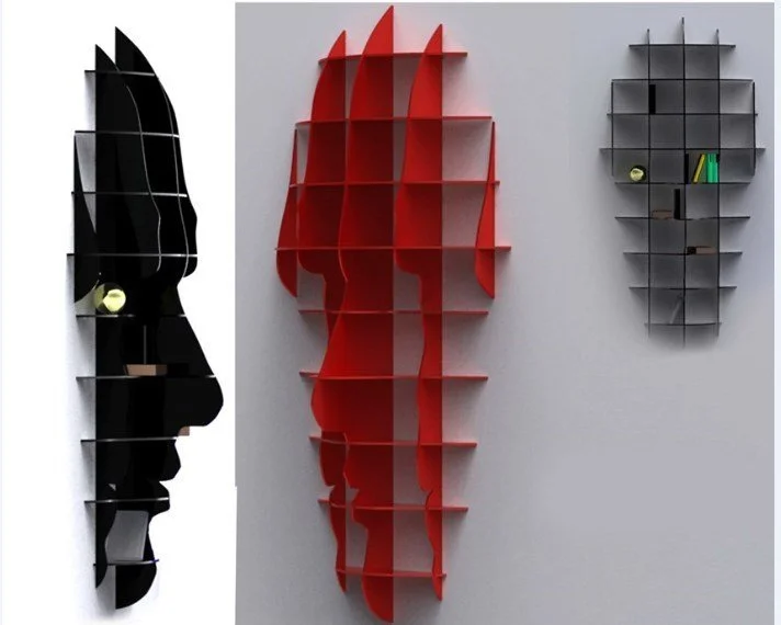 Perfect for modern homes, offices, libraries, and retail spaces seeking functional storage with artistic flair. These profile shelving units serve as statement pieces in living rooms, bedrooms, study areas, and commercial environments. Ideal for displaying books, collectibles, plants, awards, or retail products in boutiques and galleries. The unique design makes excellent conversation pieces for contemporary interiors, co-working spaces, and creative studios. Business applications include reception areas, showrooms, and modern office environments where storage meets design aesthetics. They also work wonderfully as room dividers or feature walls in open-plan spaces.
