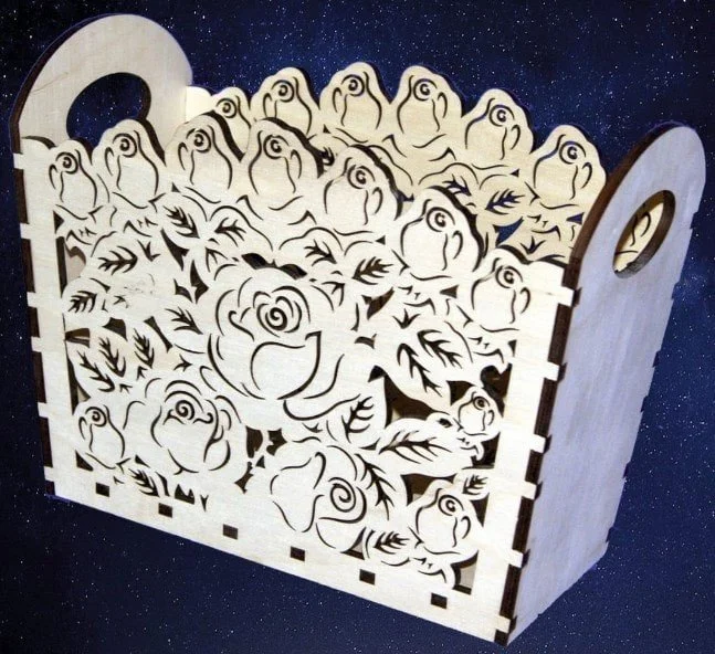 This Rose Decorative Basket design is optimized for CNC laser cutting and comes in RAR vector format. Cut it on wood, MDF, or acrylic using LightBurn, AutoCAD, or CorelDRAW for precise results.