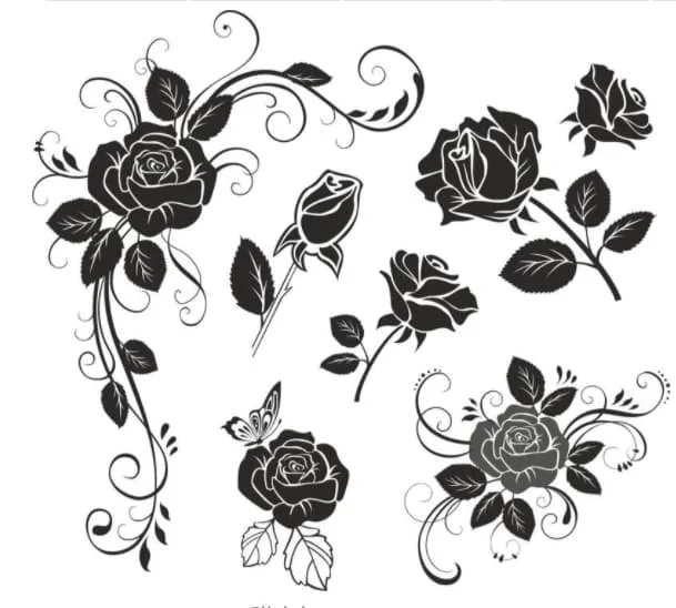 The design stands out with its perfect balance of detailed botanical accuracy and decorative artistry. Each rose element features distinct petal structures with natural depth and dimension, while the vine components create seamless connections between floral elements. The ornamental swirls provide elegant transitional elements that can be used as standalone decorative accents or as part of larger compositions. The varying sizes of roses and buds offer versatility in application and visual interest.