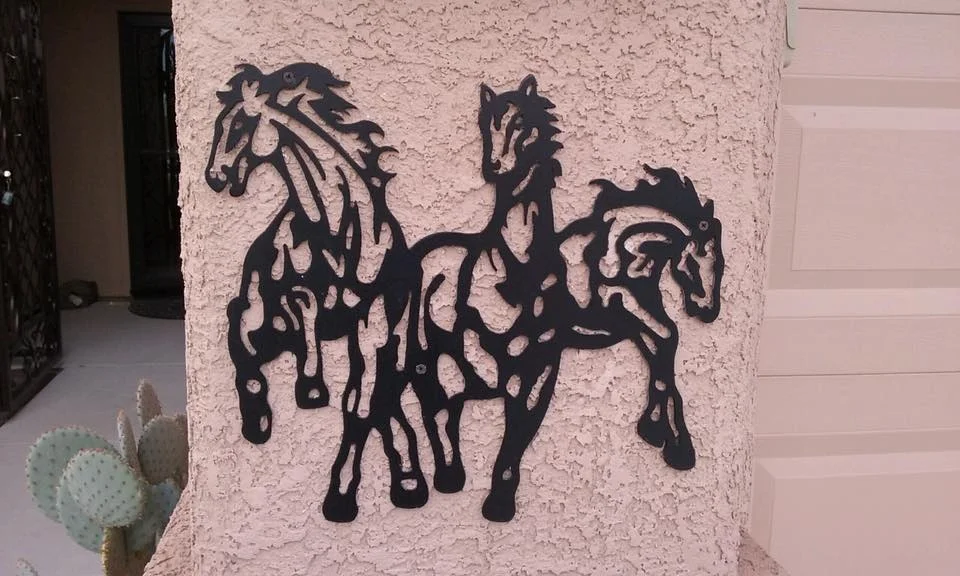 This three horses wall art serves multiple decorative and commercial purposes across various settings. In residential spaces, it creates stunning focal points in living rooms, bedrooms, and hallways, particularly appealing to equine enthusiasts and rural-themed interiors. The design works beautifully in ranch houses, country homes, and modern farmhouse styled spaces. Commercial applications include restaurants with western themes, horse stables, veterinary offices, and equestrian centers. The design makes excellent personalized gifts for horse lovers, riding instructors, and ranch owners. Wedding venues with rustic themes often incorporate such pieces for decoration. Craft businesses can offer these as custom wall art pieces, and the design scales well for both small accent pieces and large statement installations.