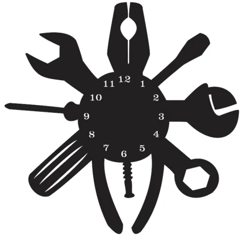 Perfect for workshop and garage wall decor, this clock design appeals to mechanics, carpenters, DIY enthusiasts, and professional tradespeople. Create personalized gifts for Father’s Day, retirement presents for craftsmen, or promotional items for tool stores and repair shops. Ideal for man caves, home workshops, automotive garages, construction offices, and technical schools. The design works wonderfully for custom clock businesses, craft fairs, and online marketplaces. Scale it for desktop versions, large wall installations, or even outdoor workshop signage. Consider creating matching tool-themed accessories like key holders, coat racks, or organizational panels using similar design elements.