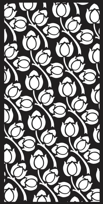 This tulip pattern design stands out with its perfect balance of botanical accuracy and artistic stylization. The flowers are sized consistently throughout the pattern, creating visual harmony while maintaining intricate detail in each bloom. The flowing arrangement avoids rigid geometric placement, instead mimicking how tulips might naturally grow in a garden bed. The bold contrast ensures clean, precise cuts on any CNC laser cutting machine, while the generous spacing between elements prevents material weakness. The design’s scalability allows for applications ranging from small decorative panels to large architectural features without losing visual impact or structural integrity.