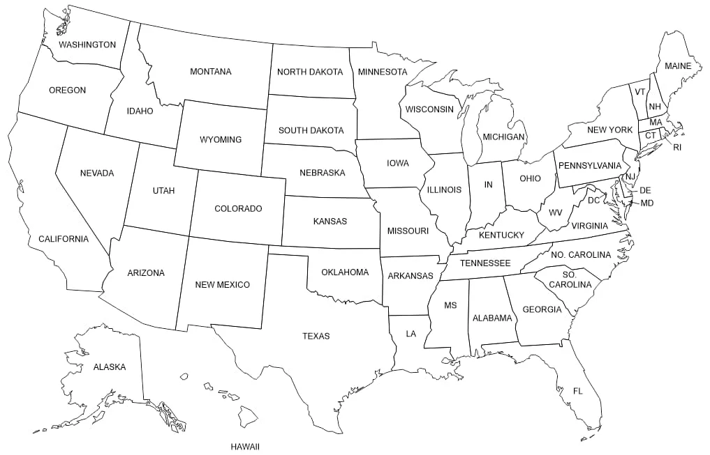 This design stands out with its comprehensive state labeling system, making it perfect for educational applications and decorative purposes. The clean vector lines ensure smooth cutting paths without material waste, while the balanced spacing between states prevents delicate connecting points. Each state boundary is precisely defined using professional cartographic standards, and the typography is sized appropriately for readability across different scale applications. The inclusion of both Alaska and Hawaii in proportionate sizing makes this a complete representation of all US states in a single cohesive design.
